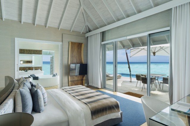 Overwater options include minimalist Water Villas perched above the lagoon, some with private plunge pools, as well as larger Water Villas with Pool and Water Bungalows with Pool that open onto expansive sundecks. At the pinnacle is the Water Suite, an indulgent overwater sanctuary with infinity pool, private bar, home theatre system, outdoor rain shower and personalised butler service. Select villas also benefit from personal butler service, private dining areas and enhanced privacy features.