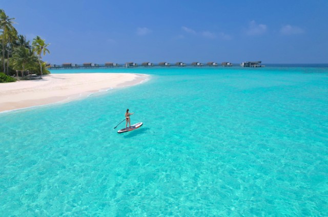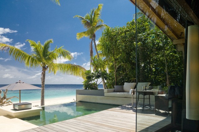 All land villas feature a private deck with table, chairs and an outdoor garden bathroom with bathtub and rain shower, and private beach access, while water villas offer spectacular panoramic ocean views from the private deck outside and individual access to the coral-filled waters below.