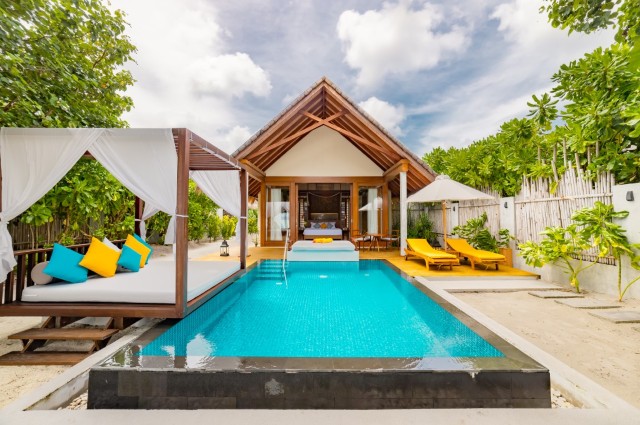 Furaveri features 169 spacious villas, many with private pools, designed to suit couples, families, and groups alike. Guests can enjoy a variety of water sports and diving adventures at the Dive Centre, or embark on excursions including sunset cruises, fishing trips, and local island visits — creating unforgettable moments both above and below the ocean’s surface.