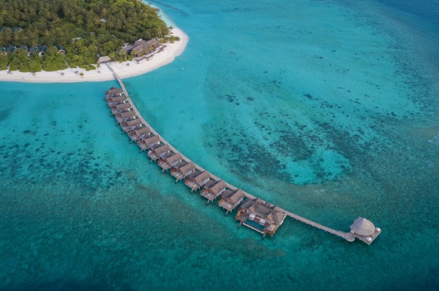 The resort is also home to the Maldives’ first Wellness Village, inspired by a traditional local village concept. Centred on holistic Asian healing, it offers a balanced approach to body, mind, and spirit. The village features eight spa treatment pavilions, a yoga pavilion, beauty salon, hydrotherapy facilities, fitness centre, and badminton and tennis courts