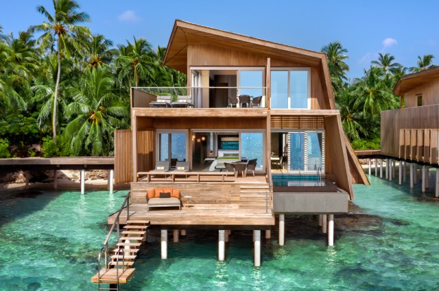 The John Jacob Astor Estate is the largest three-bedroom overwater villa in the Maldives, spanning 1,726 square metres.