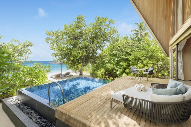 The resort features 77 villas with private swimming pools - 33 on land and 44 overwater. Each villa draws inspiration from the treasures found on and around the island, such as the overwater villas, which mimic graceful manta rays. Divided into four zones – Lagoon, Beach, Jungle and Coastal – the interior of each space reflects its location.The John Jacob Astor Estate is the largest three-bedroom overwater villa in the Maldives, spanning 1,726 square metres.